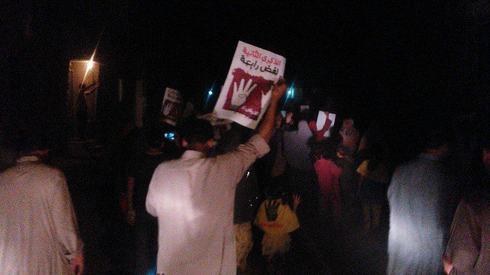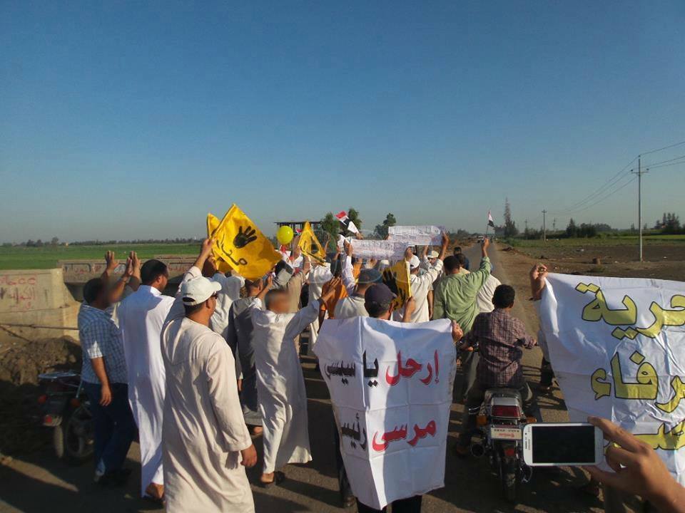 انطلقت مسيرة في قرية سندوة وبمشاركة قوية لألتراس “مصر سياسي” الذي أشعل حماس المشاركين، الذين رفعوا شارت رابعة ولافتات تطالب بالإفراج عن معتقلين محبوسين منذ فض رابعة العدوية.
