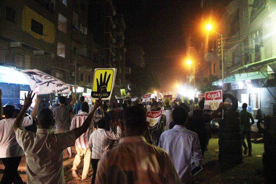 انطلقت مسيرة ضمن فاعليات التحالف الوطني لدعم الشرعية ورفض الانقلاب العسكري، من منطقة السلخانة؛ طافت المدينة وسط هتافات تطالب بإسقاط حكم العسكر رافعين صور شهداء الفض.