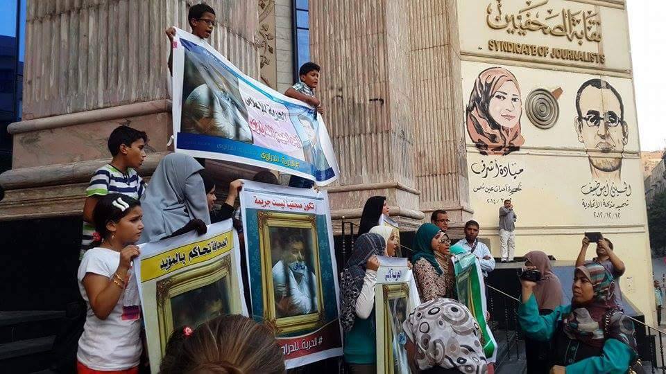 نظمت أسرة الصحفي المحتجز إبراهيم الدراوي، وقفة مساء اليوم الأحد، على سلالم نقابة الصحفيين؛ للمطالبة بالإفراج عنه، وذلك بعد مرور عامين على اعتقاله.