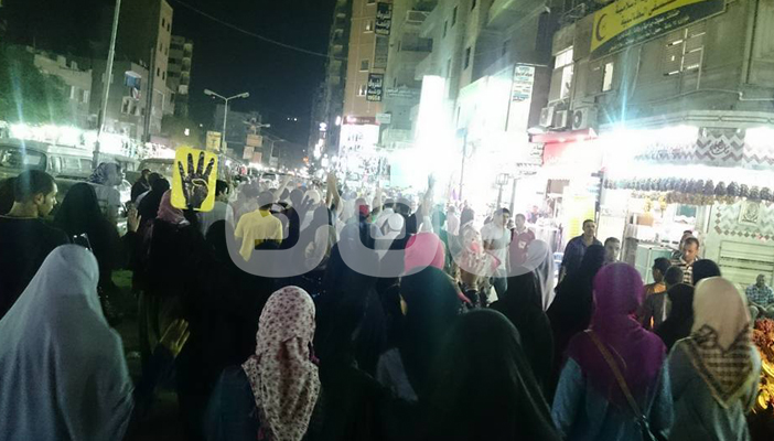 فضلا ًعن تنظيم وقفة ليلية بقرية اجا، ورفع المشاركون فيها شارات رابعة ورددوا هتافات مناهضة للانقلاب ومطالبة بالقصاص للشهداء.