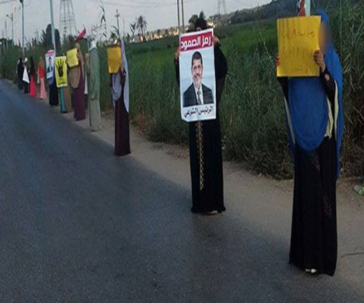 كما نظمت نساء قرية “أم الرضا” بدمياط سلسلة بشرية، على الطريق السريع، ورفعن الأعلام المصرية وعلامة رابعة رمز الصمود وصور الدكتور محمد مرسي، كما رفعن صور الأسرى والشهداء من أبناء القرية، مطالبات بالقصاص الفوري والعاجل.