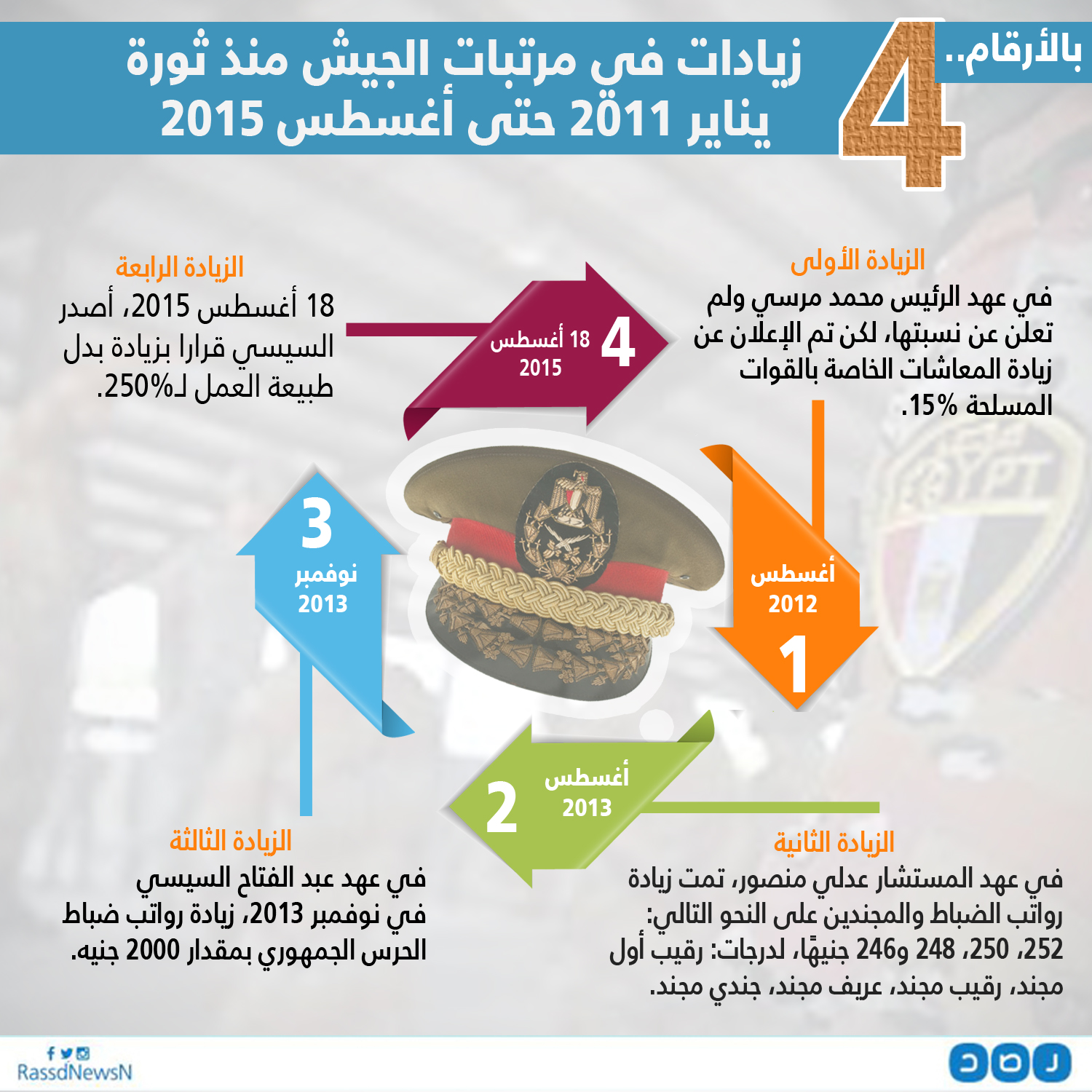 إنفوجراف.. بالأرقام نرصد 4 زيادات في مرتبات الجيش من بعد الثورة
