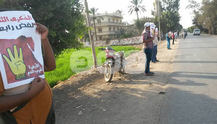نظم التحالف الوطني لدعم الشرعية سلسلة بشرية حاشدة على طريق مشتول السوق، بمدينة منيا القمح، رافعين صور الرئيس مرسي وشعارات رابعة العدوية في الذكري الثانية لمذبحة رابعة.