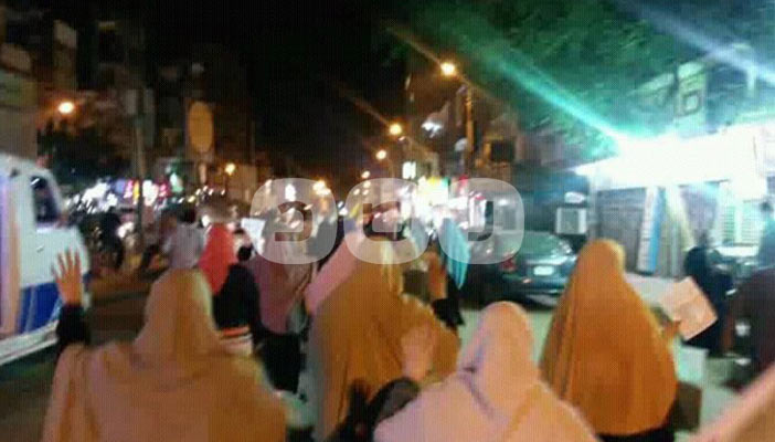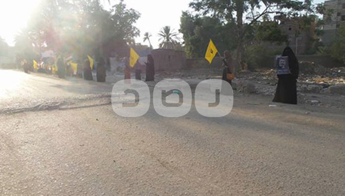 نظم التحالف الوطني لدعم الشرعية بدمياط، سلسلة بشرية مساء اليوم الثلاثاء، بمدينة كفر البطيخ امام مسجد الباروجى، ندد المشاركون فيها باستمرار اعتقال فتيات دمياط، وبذكرى مذبحة سيارة الترحيلات، مرددين العديد من الهتافات منها “يسقط حكم العسكر” و “في الجنة يا مغلاوي” و”مش هنسيب حقك يا شهيد” وسط تفاعل من المارة برفعهم اشارات رابعة العدوية..jpg)