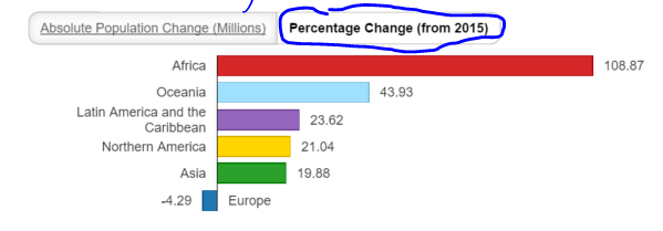 وأبرز الموقع “أن إفريقيا ستكون المنطقة الأسرع نموًّا بين عامي 2015 و2050، أو بمعنى أن أكثر من نصف النمو السكاني العالمي بين وقتنا الراهن وعام 2050 سيحدث في إفريقيا، والتي سيضاف إلى سكانها 1.3 مليار نسمة إلى خلال تلك الفترة، وهذه الزيادة تقدر بحوالي 109 بالمائة أكبر من أي تغير نسبي في أي منطقة”.