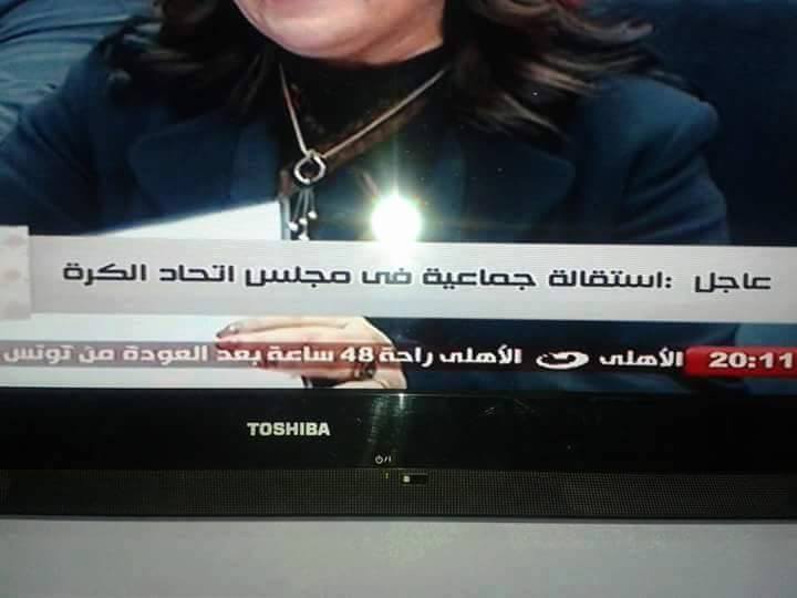 تداول نشطاء عبر مواقع التواصل الاجتماعي صورة لخبر عاجل على قناة النهار (رياضة) منذ لحظات قليلة عن استقالة جماعية في مجلس اتحاد الكرة.