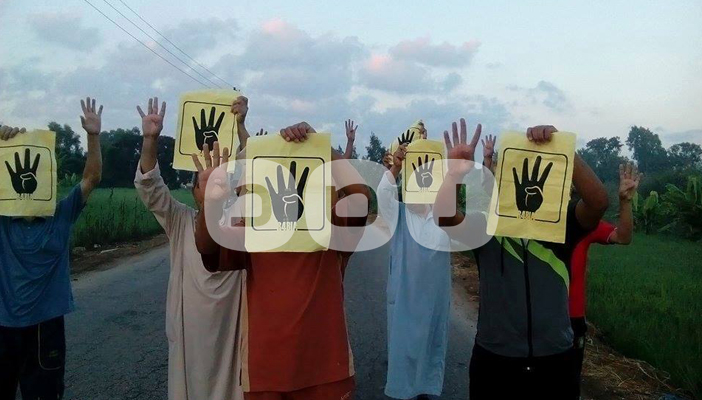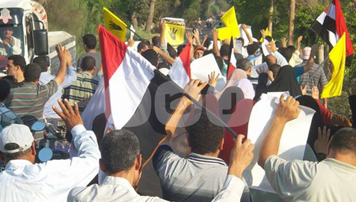 وجاءت السلسلة على طريق ” النوبارية أبو المطامير”، ورفع خلالها المشاركون أعلام مصر ورايات رابعة وصور الرئيس مرسي، ولافتات منددة بقوانين الإرهاب وزيادة معاشات العسكريين والخدمة المدنية الذي ينتقم من موظفي الدولة.