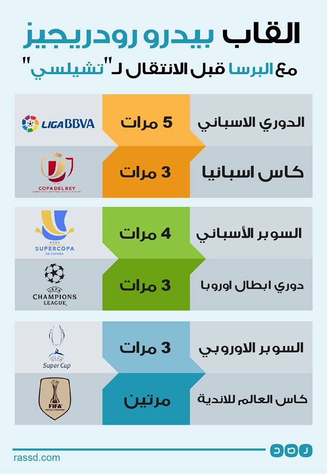 بعد انتقاله لتشيلسي نقدم لكم إحصائية بما قدمه بيدرو رودريجيز لاعب برشلونة السابق مع النادي الكتالوني عبر الانفوجرافيك التالي: