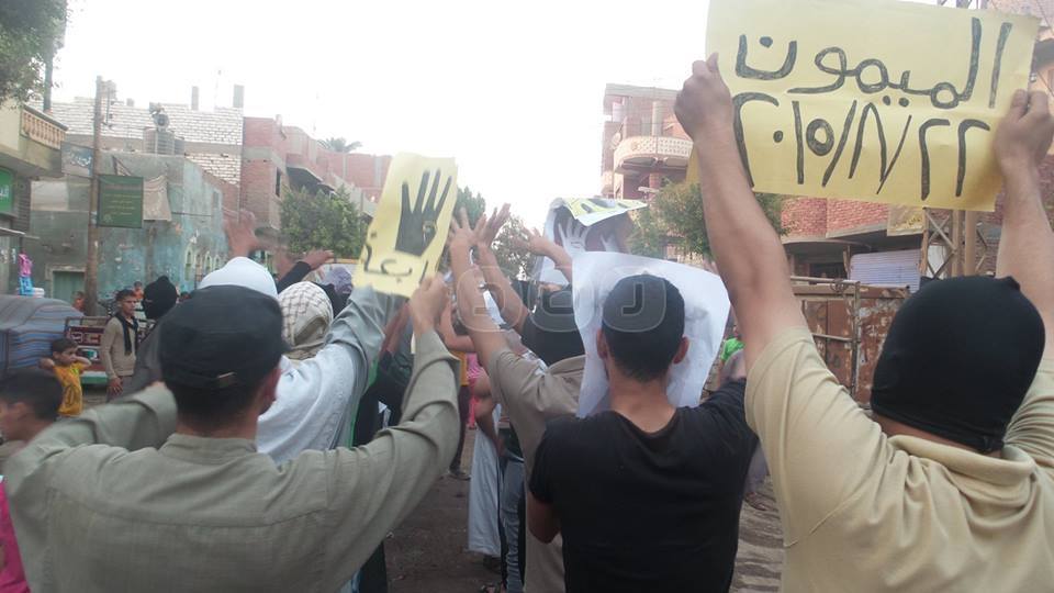في بني سويف، خرج ثوار قرية الميمون التابعة لمركز ببا في تظاهرة وسلسلة بشرية، رفعوا خلالها شارات رابعة وصور الرئيس محمد مرسي، مرددين هتافات مطالبة برحيل حكم العسكر والقصاص لدماء الشهداء.
