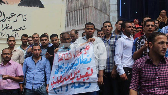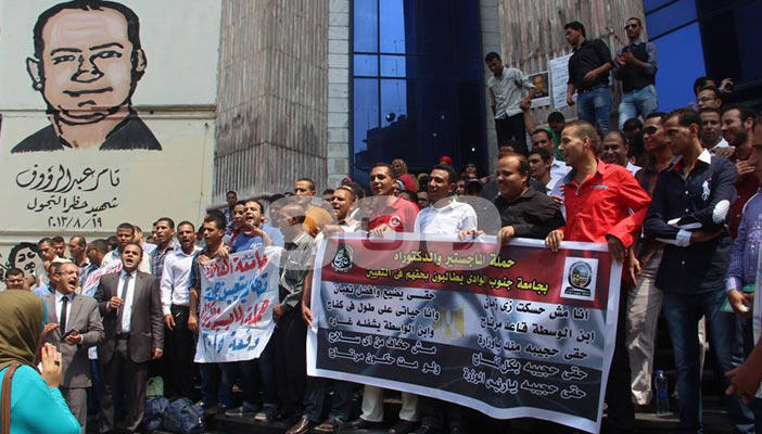 نظم عدد من حملة الماجستير والدكتوراه دفعة 2015، وقفة احتجاجية، اليوم الأحد، على سلالم نقابة الصحفيين؛ للمطالبة بتعيينهم بالجهات الإدارية للدولة أسوة بزملائهم.