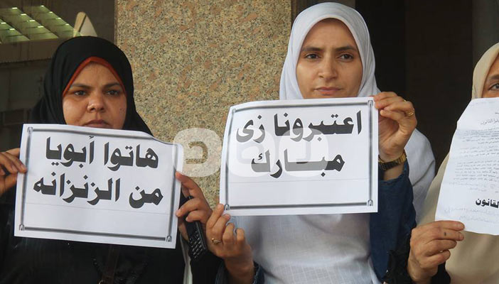 ورفع الأهالي لافتات كتيوا عليها: “اعتبرونا زي مبارك”، “هاتوا أبويا من الزنازين”، “طبقوا القانون”، “أهالينا مش بلطجية”، “أهالينا مش حرامية”.