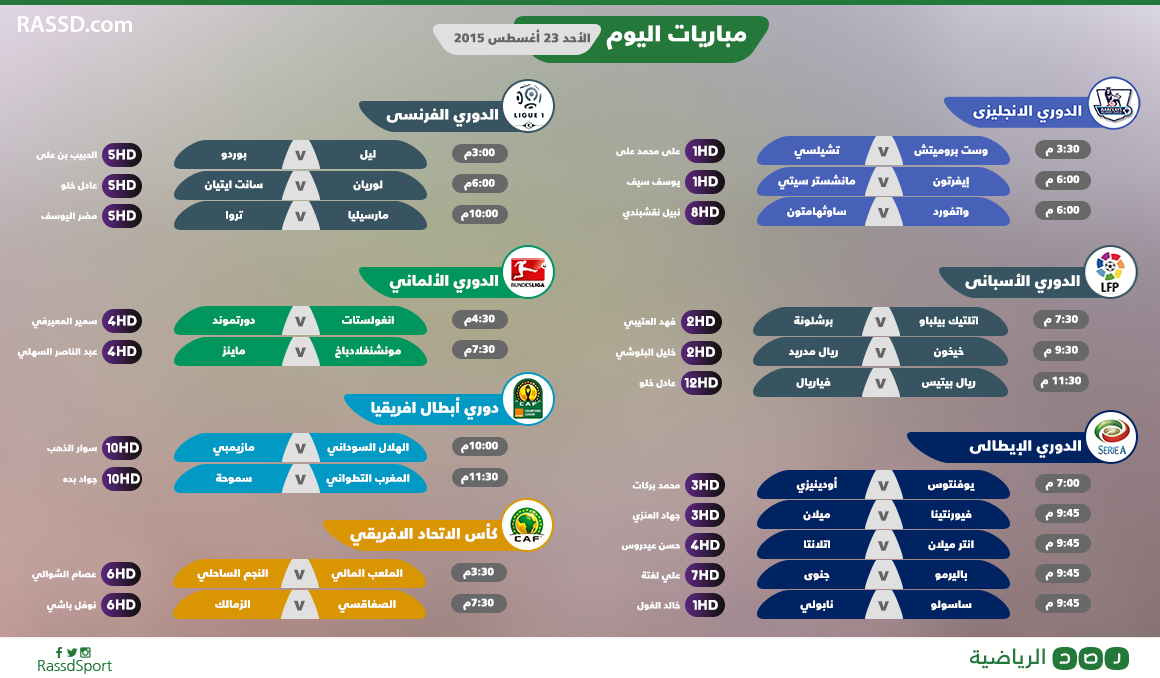 وتقدم “رصد” لكم جدول مباريات اليوم في الصورة التالية: