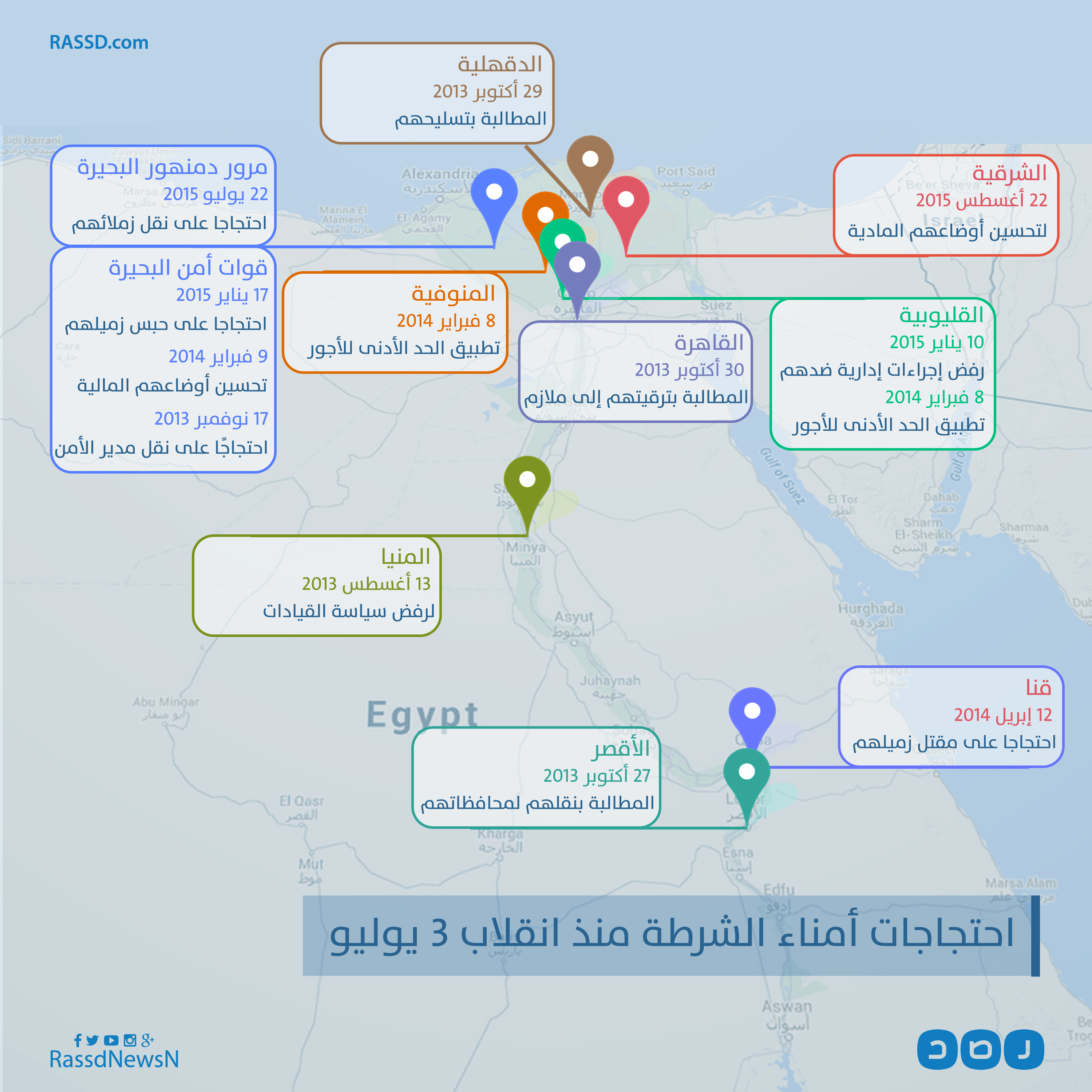 وتظاهر في 13 أغسطس 2013 المئات من رجال الشرطة اعتراضًا على سياسات قياداتهم وسوء المعاملة التي يتلقونها منهم.