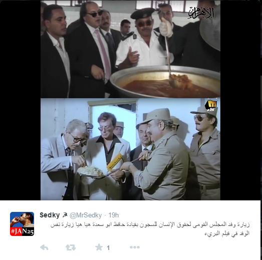 تداول رواد مواقع التواصل الاجتماعي مقطع فيديو ساخرًا من فيلم “البريء” بطولة أحمد زكي، مصحوبًا بعدد من التعليقات الساخرة “الكوميكس”؛ إذ تشابهت أحداث الفيلم مع مقطع زيارة وفد حقوق الإنسان لسجن العقرب، وذلك عقب نشر مقطع فيديو لوفد المجلس القومي داخل السجن.