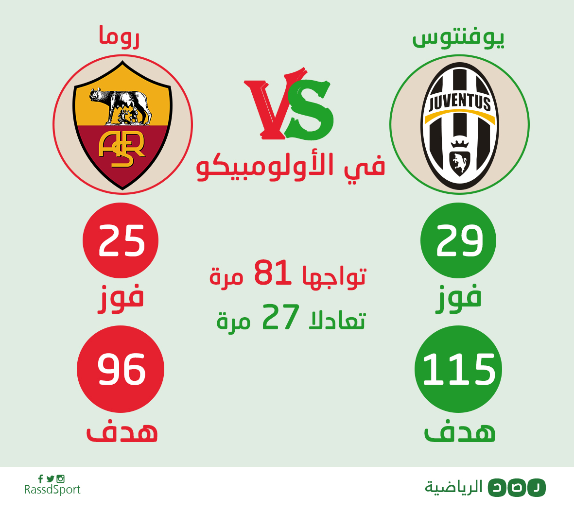 يواجه فريق روما الإيطالي نظيره فريق يوفنتوس، بعد قليل، على استاد الأولومبيكو ضمن منافسات الجولة الثانية من الدوري الإيطالي.
