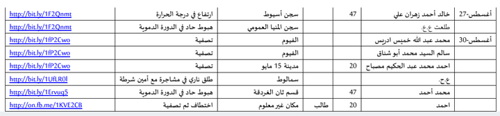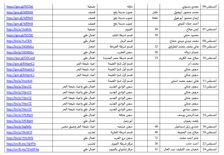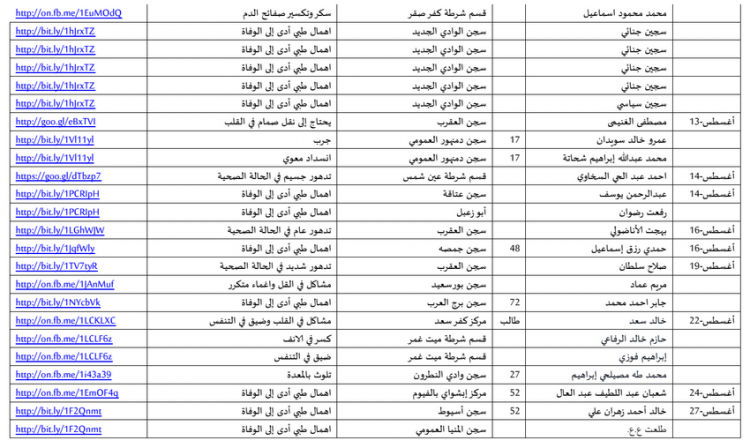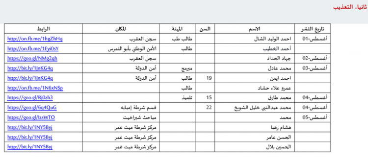 وأفاد المركز بأن التقرير يحتوي على شهادات من هاني الجمل المحتجز بسجن طره، والمصورة إسراء الطويل، والمحتجز أحمد البديوي في سجن وادي النطرون، وشهادات من أسر محتجزين في سجن العقرب ووادي النطرون وبرج العرب، وشهادات أسر محتجزين احتياطيًا في أقسام شرطة المنصورة والشيخ زويد.