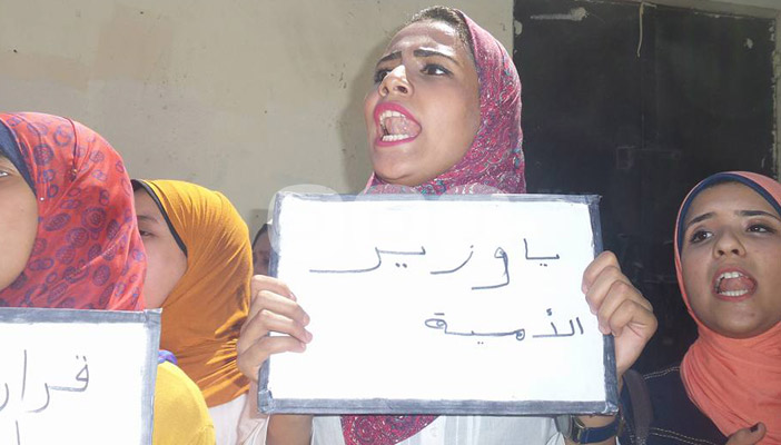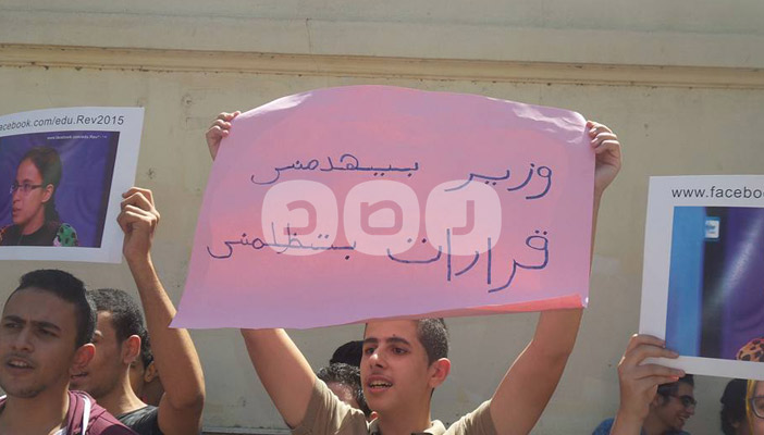 وردد المشاركون هتافات تطالب بإقالة وزير التربية والتعليم بحكومة محلب.