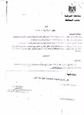 اصدر الدكتور رضا عبدالسلام محافظة الشرقية قرار رقم 9595لسنة 2015 بالغلق الإدارى لعدد 164 محل مخصبات وأسمدة زراعية مخالفة للمواصفات وبدون تراخيص .