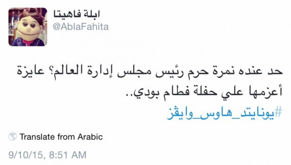 و سخرت الدمية الشهيرة “أبلة فاهيتا” من حديث الإعلامي تامر أمين، عن وجود مجلس أعلى للعالم، وقالت عبر صفحتها الرسمية على موقع التواصل الاجتماعي “فيس بوك”: “حد عنده نمرة حرم رئيس مجلس إدارة العالم؟ عاوزة أعزمها على حفلة فطام بودي”.