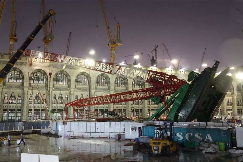 شاهد لحظة سقوط رافعة داخلة الحرم المكي: