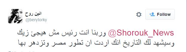 فيما أشاد آخرون بالبرنامج؛ إذ علقتberytorky : “وربنا انت رئيس مش هيجي زيك وسيشهد لك التاريخ أنك أردت أن تطور مصر وتزدهر بها”.