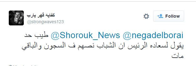 وقال “كفاية قهر يارب”: “طيب حد يقول لسعادة الرئيس إن الشباب نصهم في السجون والباقي مات”.