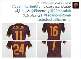 كشف نادي روما الإيطالي، أنه سيقوم بعرض قمصان بعض لاعبي الفريق في مزاد خيري؛ من أجل التبرع بإيراداتها لصالح اللاجئين السوريين.