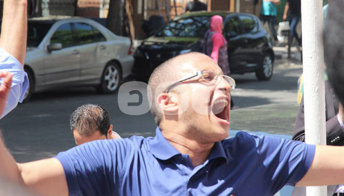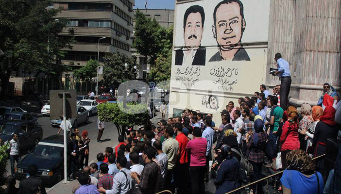 حملة الماجيستير والدكتوراه يتظاهرون بملابس الإعدام أمام نقابة الصحفيين