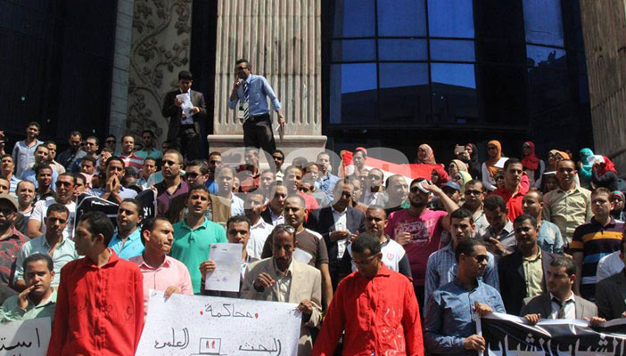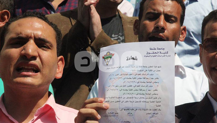 نظم العشرات من حملة الماجستير والدكتوراه 2015، وقفة احتجاجية، أمام نقابة الصحفيين؛ للمطالبة بإصدار قرار استثنائي من مجلس الوزراء من أجل التعيين.