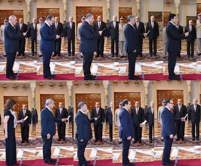 وأدى حلمي النمنم، اليمين وزيرًا للثقافة، وطارق قابيل، وزيرًا للتجارة والصناعة، ونبيلة مكرم عبد الشهيد، وزيرة للهجرة وشؤون المصريين في الخارج، وياسر القاضي، وزيرًا للاتصالات، وسحر نصر، وزيرة للتعاون الدولي، وسعد الجيوشي للنقل، وعصام فايد للزراعة.