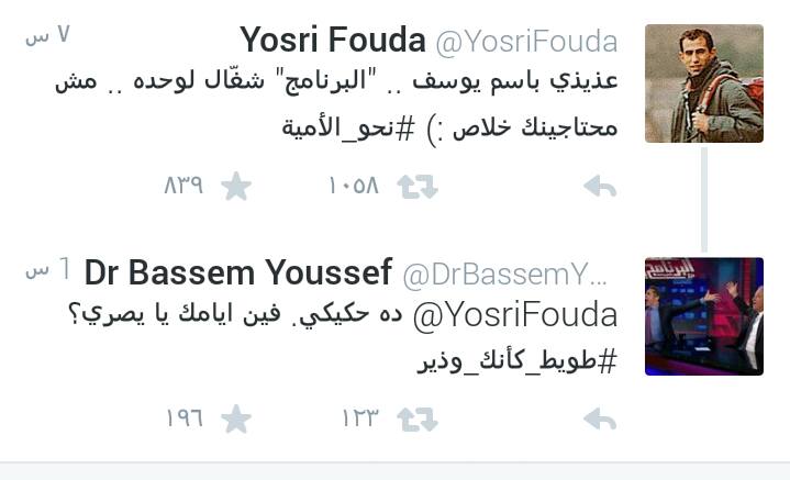 ويرد باسم يوسف: “ده حكيكي.. فين أيامك يا يصري” #طويط_كأنك_وذير.