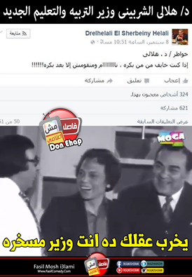 فور إعلان تعيين الدكتور هلالي الشربيني هلالي، وزيرًا للتعليم، انفجرت مواقع التواصل الاجتماعي سخرية من الوزير الجديد؛ بسبب حسابه على موقع الـ”فيس بوك”، والذي احتوى على الكثير من الأخطاء الإملائية والتعليقات الساخرة، كما انتشرت الكثير من “الكوميكسات” سخرية من الوزير.