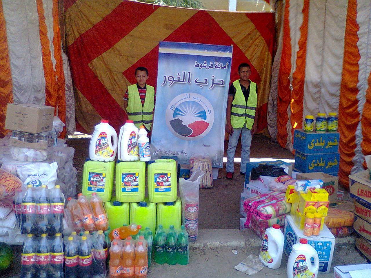 وأعلن حزب النور عن توافر علاج فيرس سي لديه بالمجان، كما قام الحزب بتوزيع اللحوم والزيت والسكر علي المواطنين .