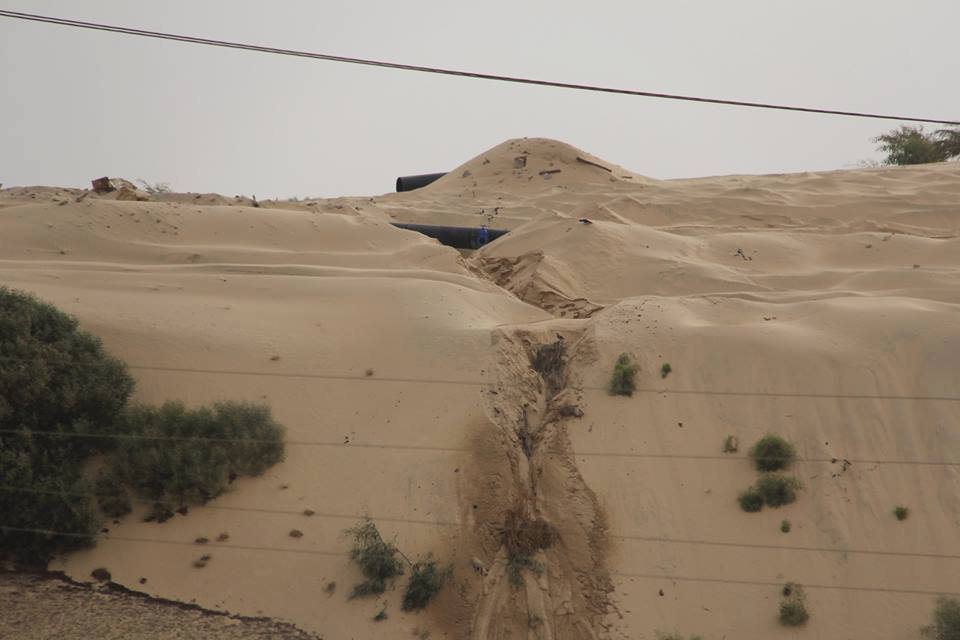 وحذر من تدمير منظومة الصرف الصحي في المناطق الحدودية، مع العلم أن محطة معالجة مياه الصرف الصحي على مقربة من الشريط الحدودي، بالإضافة إلى تدمير منظومة تجميع وتصريف مياه الأمطار وتدمير خصوبة التربة الزراعية في محافظة رفح.