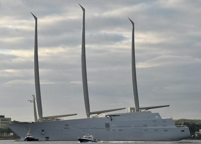 وذكرت الصحيفة أن اليخت الخارق، زود بصوارٍ أطول من برج لندن وأشرعه بحجم ملعب كرة قدم، إضافة إلى استخدام نحو ألف طن زجاج في تصنيعه، وسيستوعب عمالة نحو 54 شخصا على متنه من الخدم.