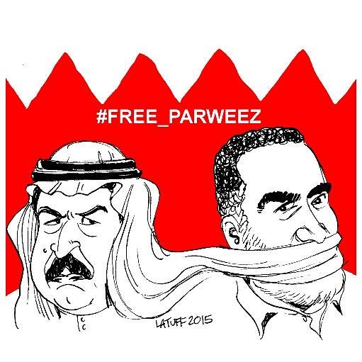 ونشر الرسام البرازيلي كارلوس لاتوف، رسما مساندا لأحد المعارضين البحرينين المسجونين من قبل النظام، وجاء في الرسم صورة الملك البحريني وبجواره محمد برويز، وقد تم “كتم” فمه، وبالأعلى هاشتاج #free_PARWEEZ.