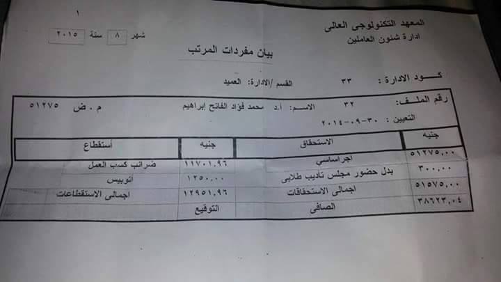 - تحديد راتبه بنفسه عن طريق مجلس إدارة المعهد، بقيمة 40,000 جنيها دون الرجوع لملاك المعهد، وتكليف المعهد بدفع القيمة الضريبية المفروضة على راتبه.