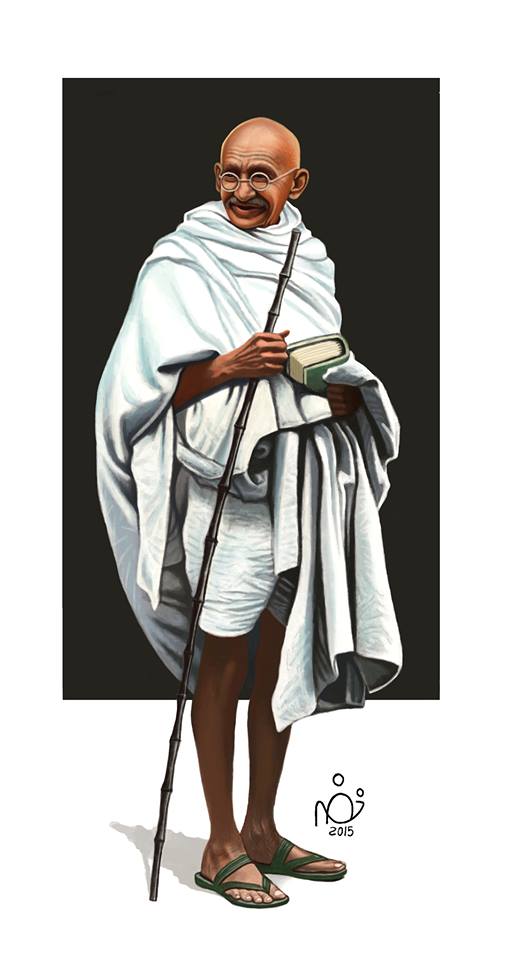 وقد استخدم الفنانون في أعمالهم تقنيات مختلفة مثل: الرسم بالقلم الرصاص، والفحم، والقلم الجاف، والحبر وحتى باستخدام التصوير المفاهيمي وإظهار أعماق غاندي من خلال مناهجهم التصويرية والفكرية وأحيانا الساخرة.