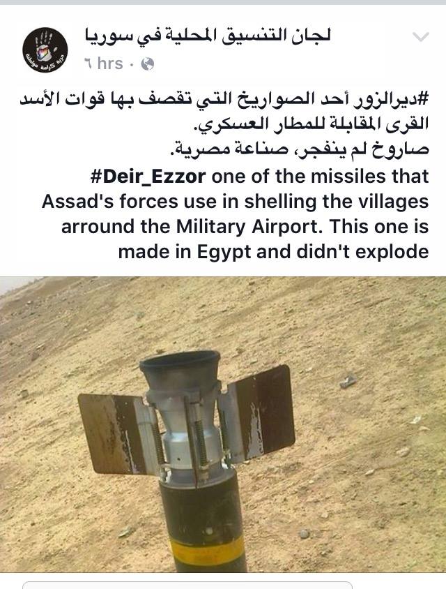 نشرت مواقع إلكترونية محسوبة على “الجيش السوري الحر”، صورا لصواريخ مصرية من إنتاج الهيئة العربية للتصنيع الحربي، قالت إن الجيش السوري النظامي استخدمها في قصف مناطق سورية وتحديدا في مدينة الزبداني.