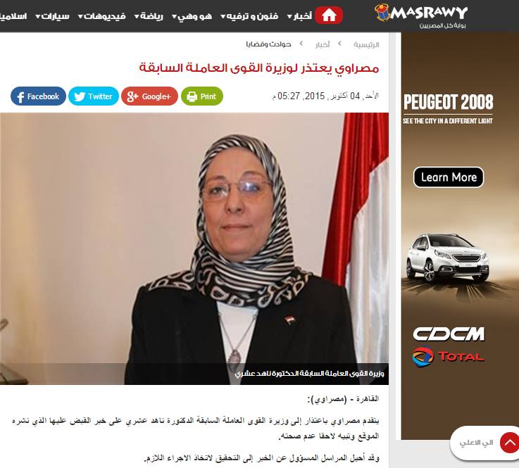 وتجدر الإشارة إلى أن عددًا من المواقع الإخبارية تناقلت خبر القبض على الوزيرة أيضًا، ولكن “مصراوي” سارع بالنفي والاعتذار للوزيرة، وهو ما يثير الكثير من علامات الاستفهام حول أمر الوزيرة.