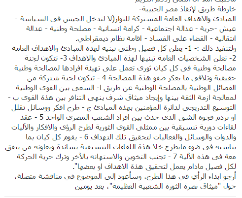 وعرض “فرجاني”، رسالة “الزعفراني” للمناقشة، قائلًا: “أرجو إبداء الرأي في هذا الطرح، وسأعود إلى الموضوع في مناقشة متصلة، حول “ميثاق نصرة الثورة الشعبية العظيمة”، بعد يومين”.