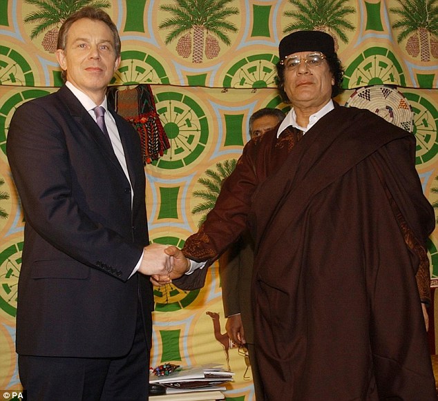 بعد الإطاحة بنظام القذافي، عُثر في طرابلس على أوراقٍ تكشف عن أنّ بلير عقدَ ستة لقاءات خاصة على الأقل مع الديكتاتور الليبي، خلال الثلاث سنوات التالية لترك بلير رئاسة الوزراء، والتي من المحتمل أنها شجعت القذافي على استنتاجه الخاطئ بأن الغرب لن يتخذ إجراءً ضده!