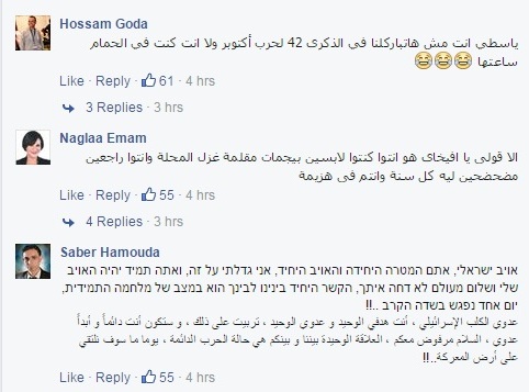 وشهدت الصفحة الرسمية لأدرعي اليوم العديد من التعليقات الساخرة من خسارة جيش الاحتلال أمام الجيش المصري في حرب 73.