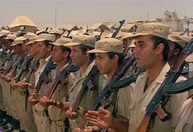 وبعد أن يقول المذيع: “نجحت قواتنا في عبور قناة السويس وتدمير خط بارليف”، يحتضن الجالسون على المقهى بعضهم وتتعالى صيحات “الله أكبر”، بينما تعلو الابتسامة وجه “المعلم” صاحب المقهى ويصرخ في الصبي الذي يعمل معه “مشاريب الرجالة كلها على حسابي”.