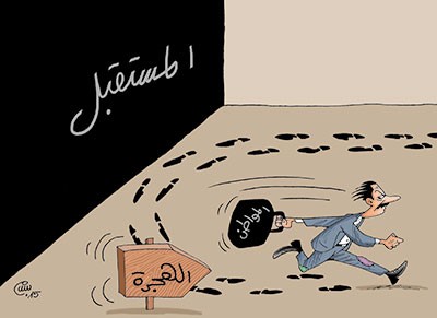 وعن حالة الهجرة التي تسيطر على الشباب العربي، رسمت صحيفة المدى هذا الرسم