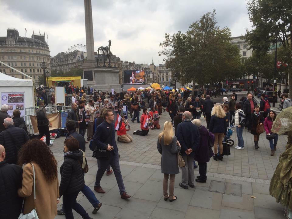 استجابة لدعوات حملة “إعدام وطن” نظم عشرات النشطاء السياسيين وقفة احتجاجية بميدان ترافلجار بالعاصمة البريطانية لندن مساء اليوم، للتنديد بأحكام الإعدام السياسية التي تصدر بحق معارضي الحكم العسكري في مصر.