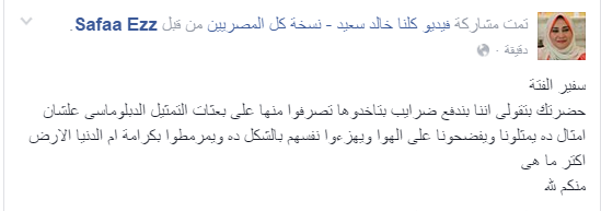 وجاءت تعليقات رواد الـ”فيس بوك”، على الفيديو ساخرة؛ فقالت صفاء عز: “سفير الفتة.. حضرتك بتقول إننا بندفع ضرايب بتاخدوها تصرفوا منها على بعثات التمثيل الدبلوماسي علشان أمثال ده يمثلونا ويفضحونا على الهوا ويهزءوا نفسهم بالشكل ده ويمرمطوا بكرامة أم الدنيا الأرض أكتر ماهي”.