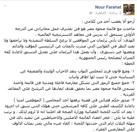 وأشار “فرحات” إلى خطة تم وضعها بعد انسحاب “صحوة مصر”، حددها في عدة نقاط، وهي: