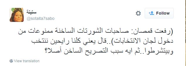 وسخرت ‏sotaita7sabo قائلة: “قال يعني كلنا رايحين ننتخب وبيتشرطوا..ثم إيه سبب التصريح الساخن أصلًا؟”.