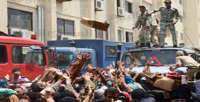 ومنذ الاستفتاء علي الدستور والانتخابات الرئاسية، بدأ الجيش في توزيع كراتين مواد غذاية علي المواطنين لحثهم علي المشاركة في الانتخابات.